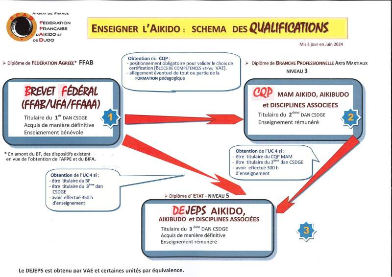 Le Certificat de Qualification Professionnelle « Moniteur d’Arts Martiaux » (CQP MAM) – Option Aïkido, Aïkibudo et disciplines associées – est un diplôme de niveau 3 (BEP, CAP) délivré par la branche professionnelle du Sport et est inscrit au répertoire national des certifications professionnelle depuis le 1er Juin 2024 (Fiche RNCP N°39116).